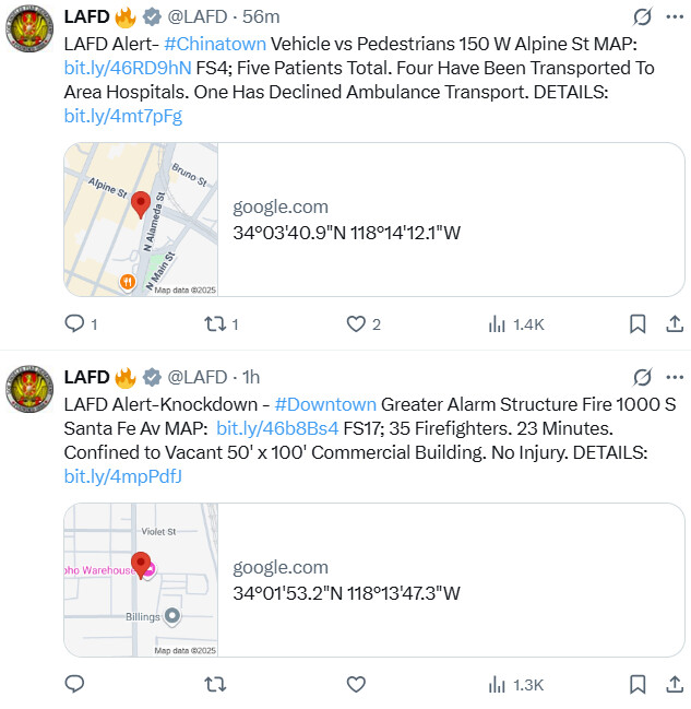 LAPD는 오늘(19일) 오전 11시 38분 알라메다와 알파인 스트릿 교차 지점 인근인 150 웨스트 알파인 스트릿에서 차량 1대가 보행자 5명을 들이받았다고 밝혔다.