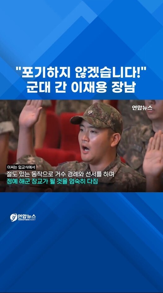 이재용 삼성전자 회장의 장남 이지호(24)씨가 오늘(9월23일) 경남 창원시 진해구의 해군사관학교 웅포 강당에서 해군 사관후보생으로 정식 입교했다.