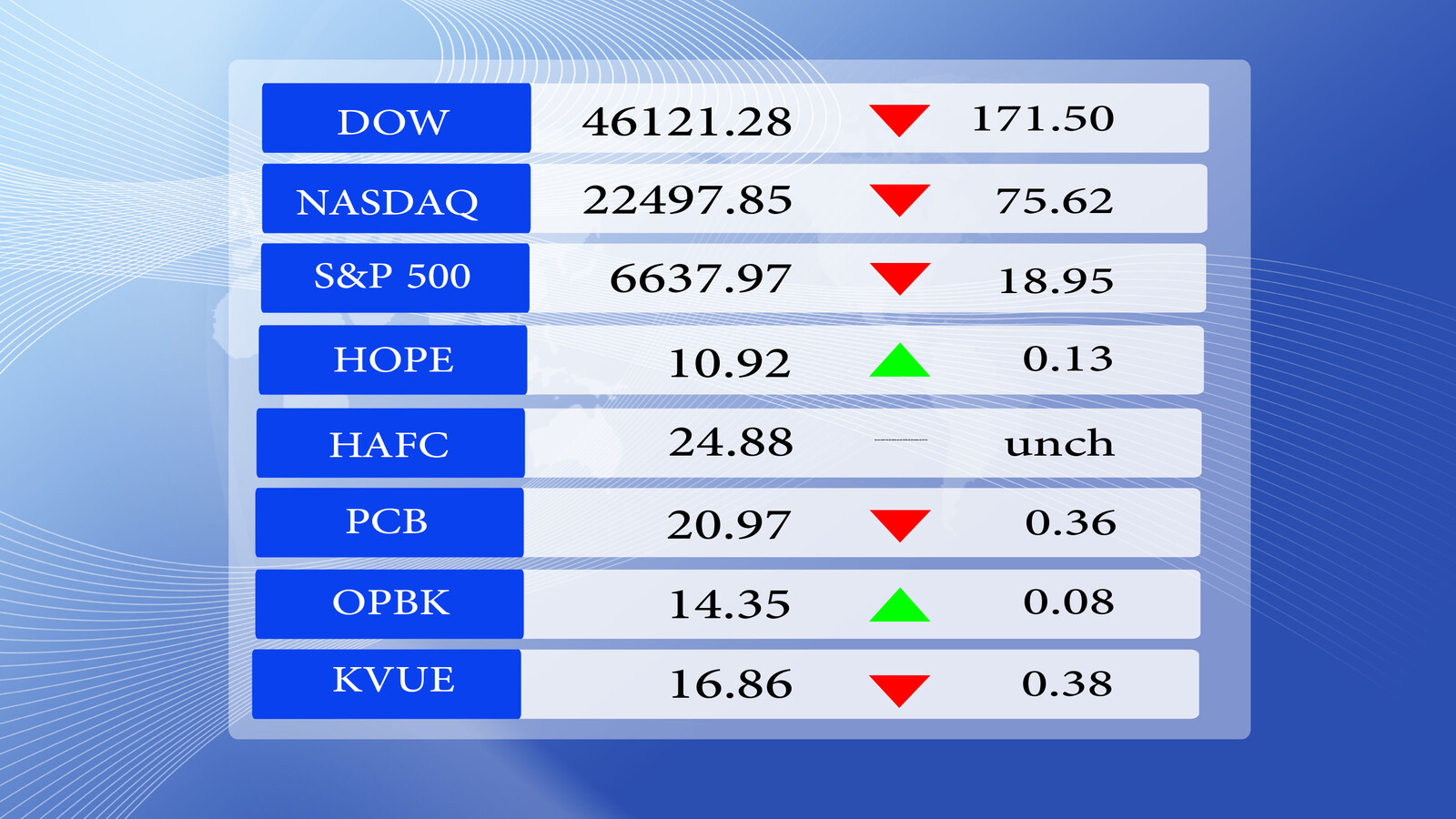 주식시장은 3주 만에 이틀 연속 떨어졌다.
