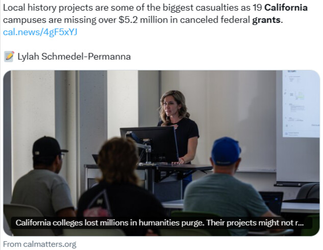 캘리포니아 주요 대학들이 수백만 달러 규모에 달하는 인문학 연구 보조금(NEH Grants) 을 잃게 되면서 학계와 지역 사회에 큰 파장이 일어나고 있다.