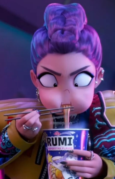 이런 동영상은 어린 출연자들이 마치 애니메이션 영화 속 케데헌의 캐릭터처럼 소형 컵라면을 맛보는 내용이다.