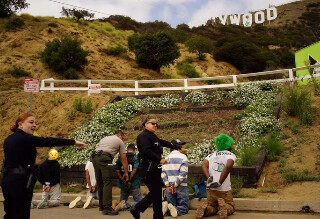 지난 주말 헐리우드 사인에 현수막을 걸려던 6명이 체포됐다.