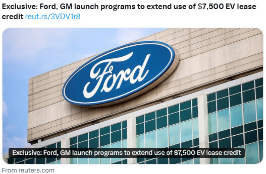 GM은 고객이 리스 혜택을 이어받을 수 있도록 세액공제를 연장할 수있는 오퍼를 마련했다고 밝혔고, 포드는 12월 31일까지 경쟁력 있는 리스료를 제공하겠다는 방침이다.