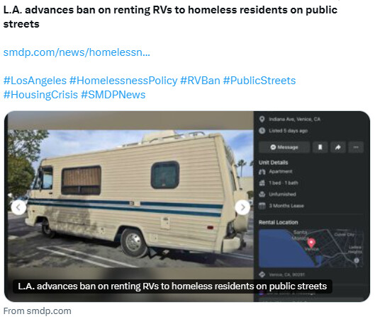 이번 LA 시 조례는 노숙자 RV 임대를 불법화하는 반면 개인이 자기 소유 RV에서 머무는 행위를 금지하지는 않으며, 차량을 상업적으로 임대, 대여해 공공도로에서 주거 용도로 활용하게 만드는 ‘중개업자나 임대업자, 즉 Vanlord를 직접 겨냥하는 법이다.