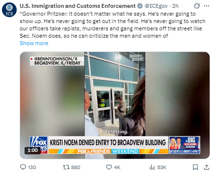 하루 전 시카고 교외 브로드뷰의 ICE 시설에 크리스티 놈 국토안보부 장관이 방문했을 때도 시설 앞에서 연방 요원들이 시위대를 밀치며 충돌이 벌어졌고, 몇 시간 동안 대치가 이어졌다.