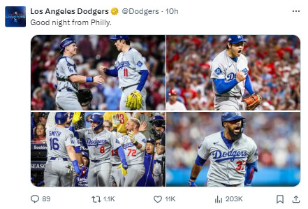 역전 리드를 잡자 다저스는 7회말부터 불펜진을 가동해 필라델피아의 추격을 무실점으로 봉쇄하고 승리를 챙겼다. 9회말 마무리는 사사키 로키가 맡아 1이닝을 1피안타 무실점으로 막고 같은 일본인 투수 오타니의 승리를 지켜줬다.
