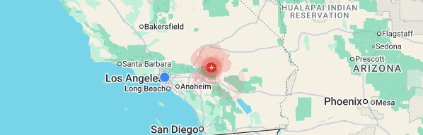 진앙은 샌버너디노 시내에서 북동쪽으로 29마일, 헤스페리아에서 남동쪽으로 27마일, 팜스프링스에서 북서쪽으로 약 40마일 떨어진 지점이었다.