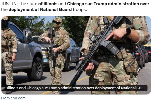 일리노이 주와 시카고 시는 법원에 트럼프 행정부가 일리노이 주 방위군을 연방화하거나 타주 병력을 배치하는 행위를 영구적으로 중단시켜줄 것과 더불어, 주 방위군의 연방화 자체를 위헌으로 선언해 줄 것 등을 요청하고 있는 모습이다.