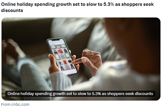 5.3%의 성장률은 여전히 상당한 규모이지만, 지난해 연휴 시즌 온라인 매출이 8.7% 급증했던 것에 비하면 성장하는 속도가 느려지고 있는 것으로 분석된다.