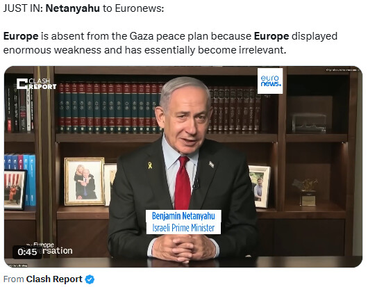 그러면서 그 이유를 유럽의 팔레스타인 국가 인정 움직임과 "급진 이슬람주의자들에게 굴복한" 자세에서 찾으며 유럽이 본질적으로 존재감이 사라졌다고 강력하게 비판했다.