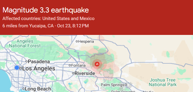 어제(23일) 저녁 남가주 샌버나디노 카운티에서 규모 3.3 지진이 발생했다.