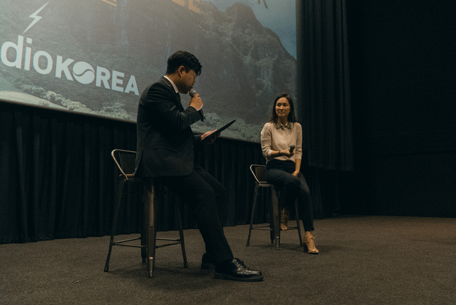 Credit: Radio Korea | '하와이 연가' 특별 시사회에서 인터뷰하는 이진영 나우프로덕션 감독