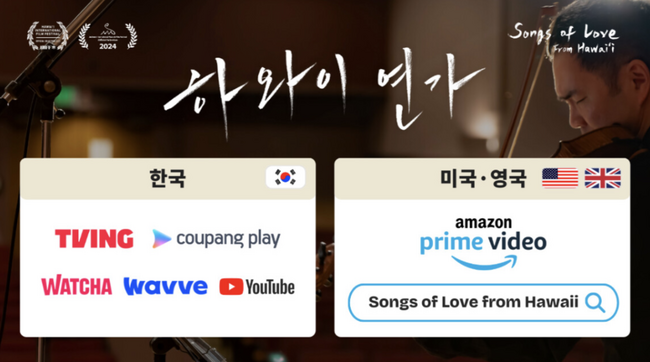 음악과 역사, 그리고 개인의 기억을 결합한 하이브리드 음악 영화 ‘하와이 연가(Songs of Love from Hawaii)’가 미국과 영국의 아마존 프라임 비디오(Amazon Prime Video)에서 스트리밍을 시작했다.