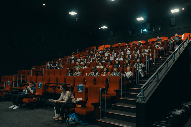Credit: Radio Korea | '하와이 연가' 특별 시사회에서 영화를 시청 중인 관객들